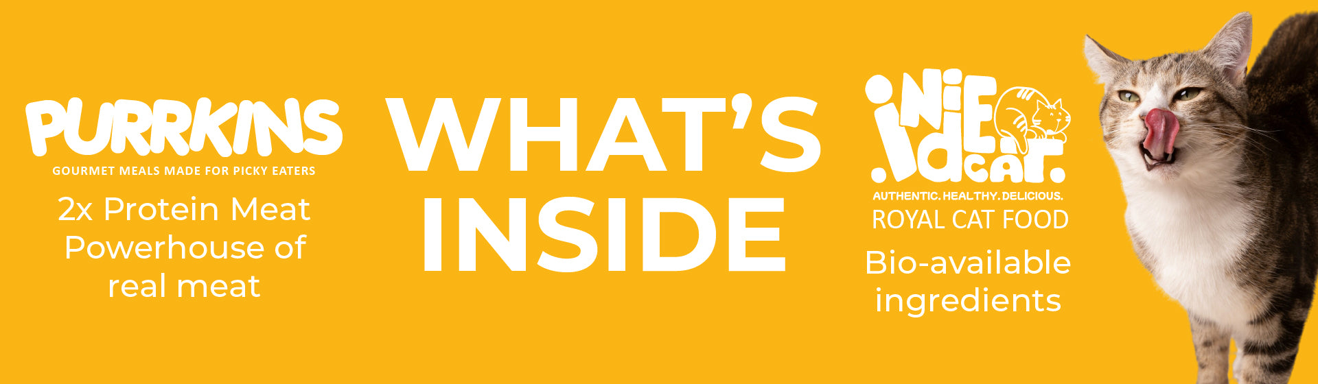 IndieCat Adult Chicken & Liver Royal Pate: Chicken meat, Chicken liver, Broth, Chicken heart, Camel milk, Egg, Chicken fat, Potato flakes powder, Collagen, Yeast extract, Fortified nutritional yeast, Fructo Oligosaccharide, Inulin, Pumpkin seed powder, Psyllium husk, Beetroot powder, Moringa extract, Eggshell powder,