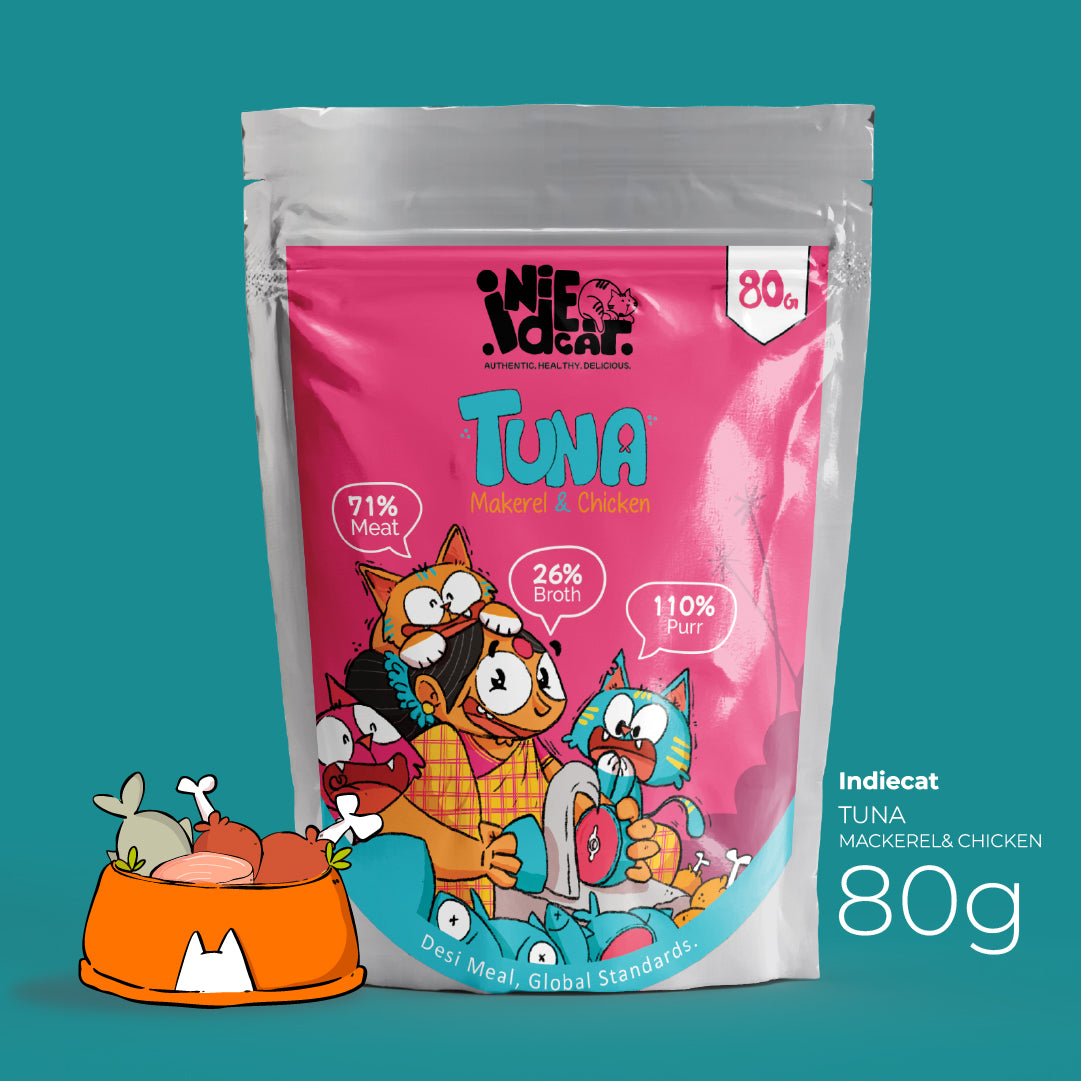 IndieCat Adult Tuna, Mackerel & Chicken (80g Packs)