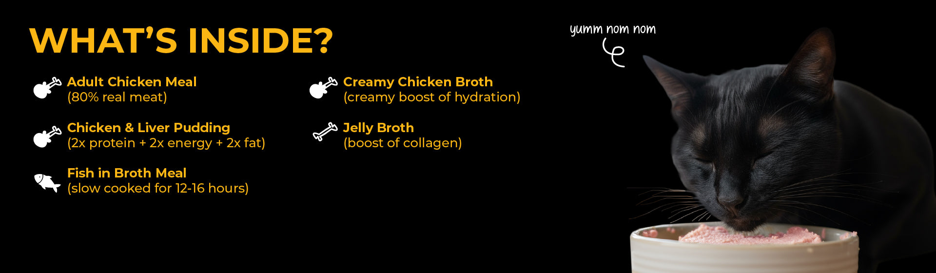 This pack is ideal for picky eaters as it allows you to test different textures and palatability enhancers without commitment. Start by offering the highly palatable Chicken & Liver Pudding or pouring the irresistible Creamy Chicken Broth over their existing food to encourage acceptance.